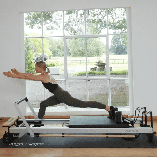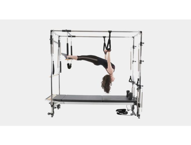 This version of the C8-Pro reformer comes with a Full Cadillac Frame which includes the C8-Pro Pilates Reformer, Full Cadillac Frame & Brackets, Leg Extensions, Mattress Converter, and Platform Extender – all you need for a complete Pilates Reformer & Cadillac combo. The full stainless steel upper frame is superior to standard chromed steel frames, ensuring a long and corrosion free life. The C8-Pro is suitable for users 145cm – 193cm (4’10” – 6’4″), max. user weight: 331 lbs or 150kg.