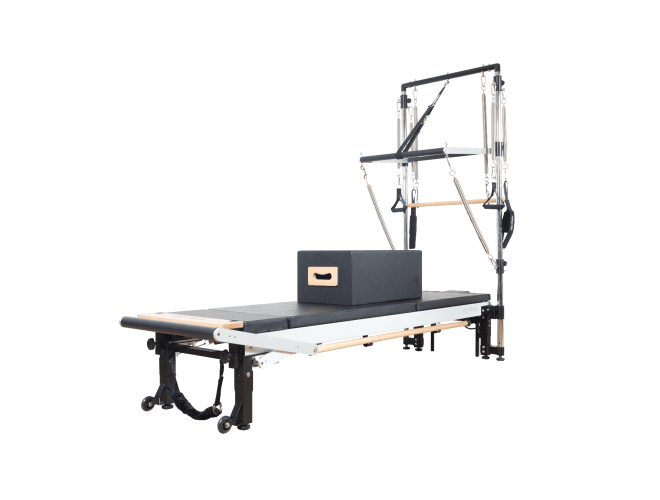 This version of the C8-Pro reformer comes with a Half Cadillac Frame which includes the C8-Pro Pilates Reformer, Half Cadillac Frame & Brackets, Leg Extensions, Mattress Converter, and Platform Extender – all you need for a complete Pilates Reformer & Half Cadillac combo. The full stainless steel upper frame is superior to standard chromed steel frames, ensuring a long and corrosion free life. The C8-Pro is suitable for users 145cm – 193cm (4’10” – 6’4″), max. user weight: 150kg.