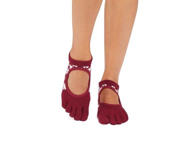 FULL TOE GRIP BELLARINA Bellarina has everything you need in a barre sock. Bellarina struts her stuff with a heel tab that provides extra comfort and protection to the Achilles tendon. She rocks an arch band for graceful lift and support. Wear Bellarina for all barefoot activities like barre, Pilates, yoga, and dance. Stick To Your Practice™. -Patented non-slip grip keeps your feet in place -Five toe design allows toes to move and spread naturally -Hygienic alternative to bare feet -Fitted heel keeps sock in place to eliminate bunching and twisting -Made with organic cotton -Unisex sizing 90% Organic Cotton 8% Spandex, 2% Other Fiber. Printed socks: 58% Polyester, 32% Cotton, 8% Spandex, 2% Other Fiber. Machine washable. Wash inside out in gentle cycle. Line dry or low heat in dryer. No bleach or iron.