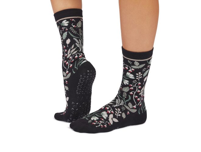 Jess Grip Socks is a trendsetter with a lovely anklet height. The anklet height falls between the ankle and calf while Tavi's grip sock pattern safely moves you through your barre, Pilates and yoga classes.