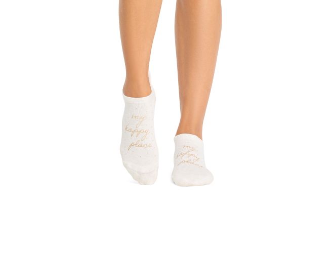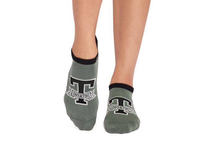 Savvy gives your sporty side a touch of sensual style. Her low rise design hugs below the ankle while Tavi's stellar grip sock pattern safely moves you through your barre, Pilates, and yoga classes. Express the heart of Tavi with Function that Flows into Fashion.