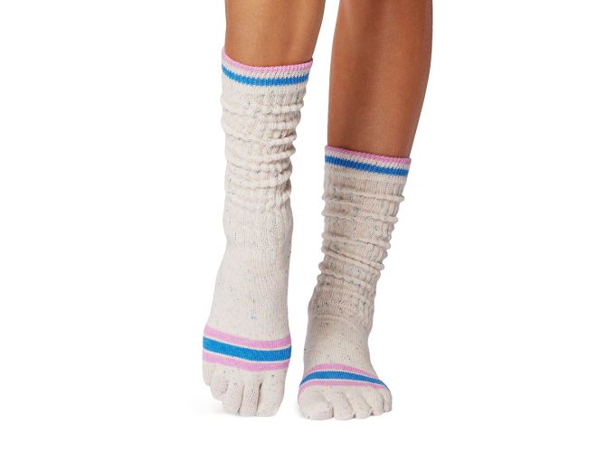 Toesox Slouch keep muscles warm and ready to perform. Features ToeSox patented non slip sole. Perfect for Yoga, Pilates and Barre. Made with super soft, organic cotton in a variety of great colors.