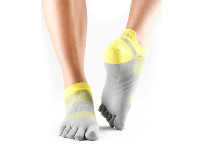LOW RISE RUNNING SOCK Tough is the new pretty. These low rise all sport socks are designed to keep you cool and go the distance. Raised heel tab to pad Achilles tendon Vector heel creates defined heel cup for optimal fit Vented knit top allows for faster cooling and moisture release Arch band provides gentle pressure to lift and support Seamless five toe construction promotes circulation, removes moisture, eliminates friction and blisters between toes Unisex sizing 90% Polyester; 10% Spandex. Machine washable. Wash in gentle cycle. Line dry. Do not bleach or iron.